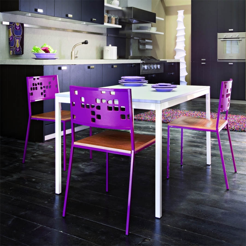 Painted or chromed steel table, 40x30 perimeter and 30x30 legs tube, assembling.