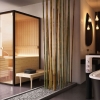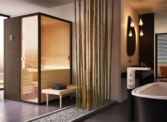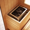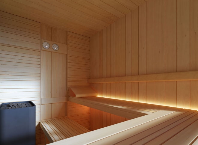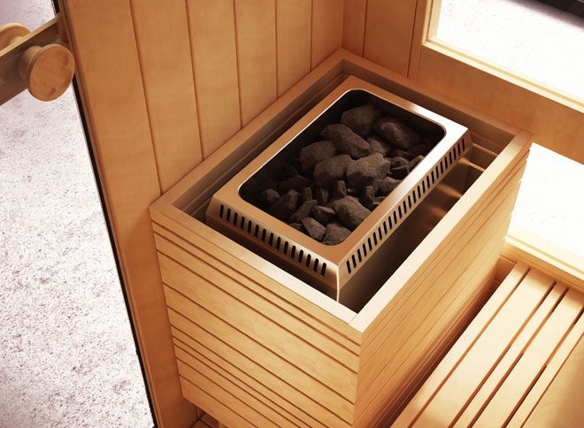 The Loyly sauna is about creating a sensual interior space where you love to spend time, while also feeling connected to the outside. This idea reminds us of sitting on a deep window ledge with a beautiful view and this evocative impression is something we recreated with Loyly. There is also a clear visual distinction between inside and outside that emphasises the feeling of being cocooned; Loyly combines the material wisdom of a natural wood sauna on the inside with a different tone wood for the exterior shell. It is important to us that Loyly will integrate well into a chosen space. Loyly has fixed upper benches, while the lower level comprises two separate and free standing benches. This allows for sitting face to face and lying down with benches arranged end to end.